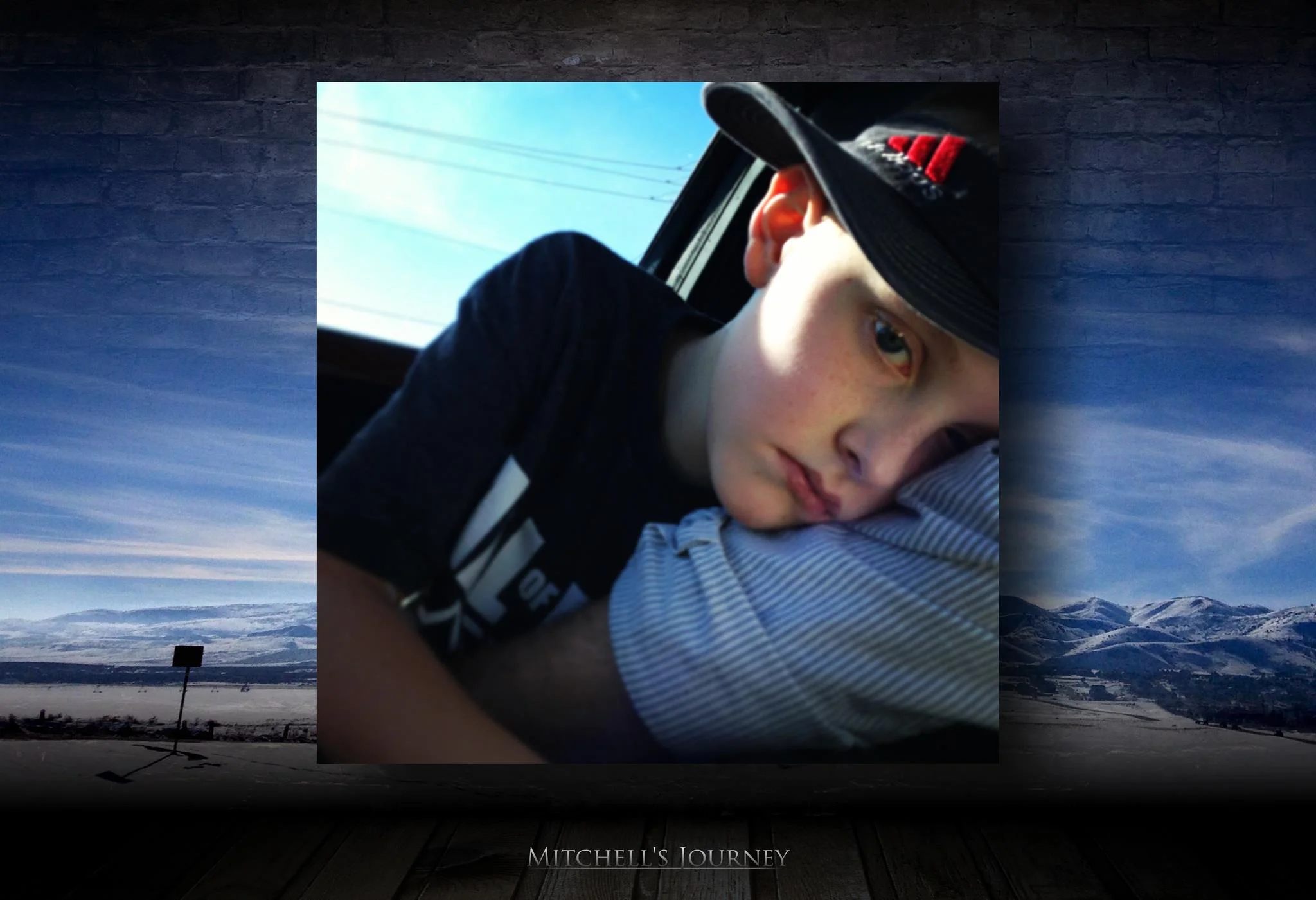 I couldn't believe all that was happening. There, in my passenger seat, was my weary son dreaming of tomorrow but loving his moment with me. He was on borrowed time – and I think he began to sense it. Mitch asked if he could wear my hat, which I softly placed on his head. I am glad he did because the visor kept him from seeing the waterfall of tears that ran down my face and neck. I quietly took my iPhone and photographed his face and this was his expression. I don’t know what he was thinking at this moment – but this photo haunts me.