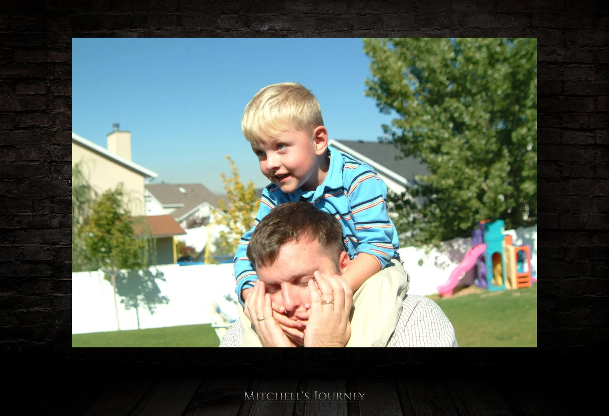 On this day Mitch asked to sit on my shoulders so he could peer over the fence in our back yard and wave goodbye to his big sister who was walking to school. The fence was just tall enough that I couldn't see over it, not even on my tiptoes. But once on my shoulders, Mitch could see the brave new world just over the fence. A world he could always hear but couldn't see. Once on my shoulders he would tell me the things he saw. He would yell out as if to say “Dad, this is awesome! If you could see what I see!”