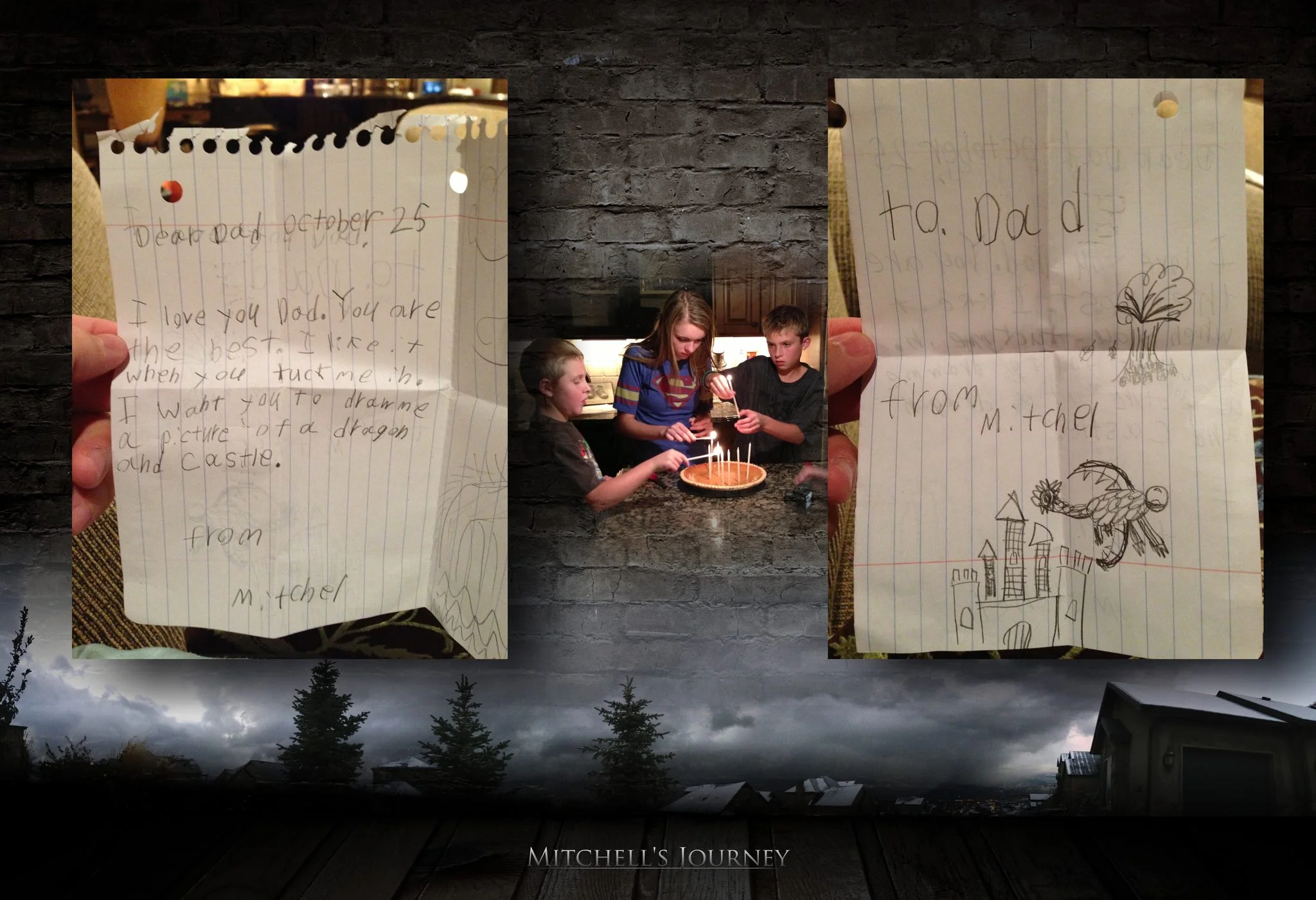 I loved then, and even more today, the humble, heart-felt birthday card Mitch wrote me last year. He was so sweet about it. I'll never forget how he handed it to me with a shy smile and eager eyes anxious to see my reaction. I remember kneeling down and reading it, then looking him in the eye, thanking him and then giving him the biggest hug. I wanted him to know what he did was awesome and that I appreciated it very much.
