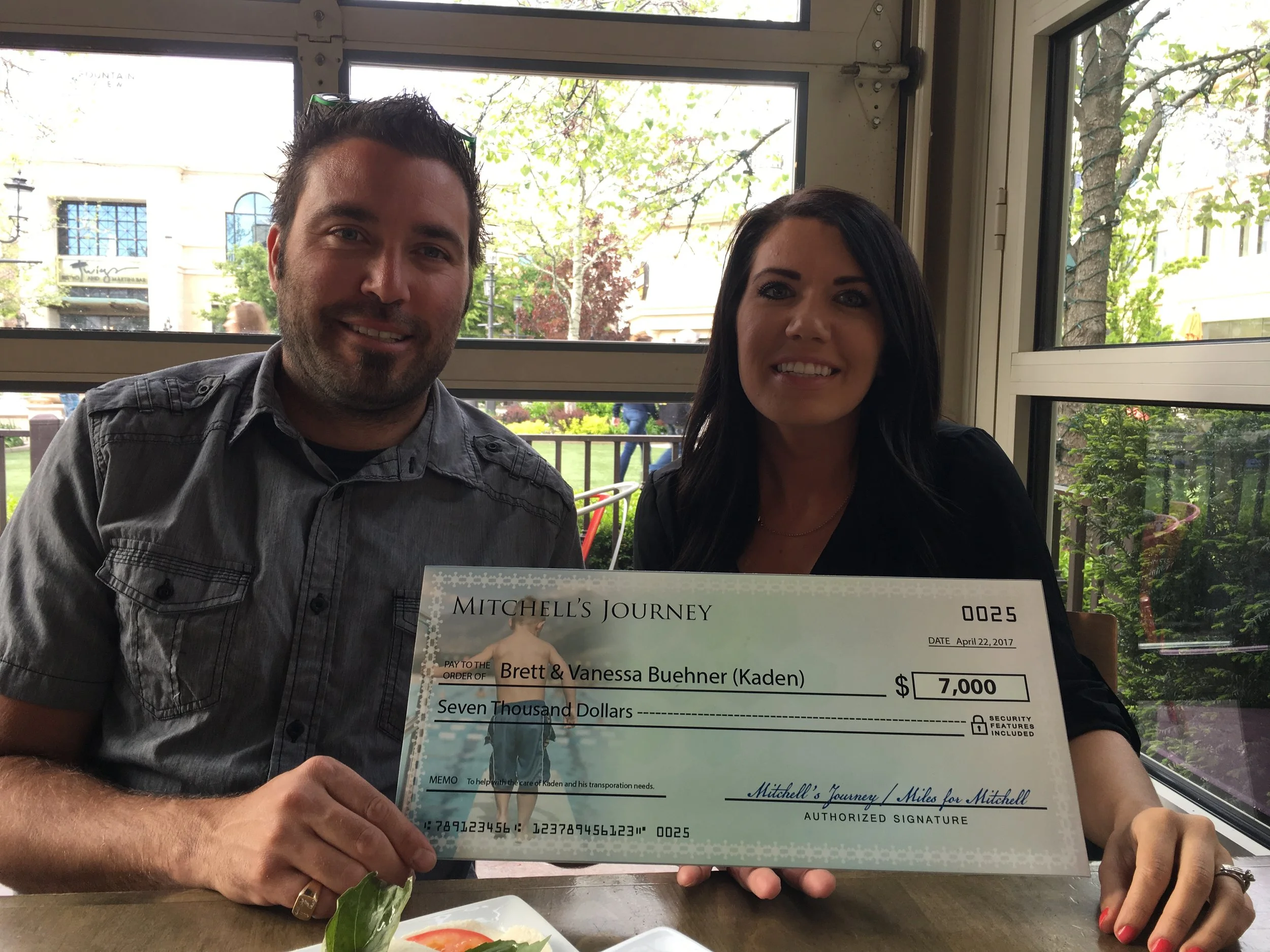 In May 2017 we gave the Buehner family a check for $7,000 to help with their wheelchair accessible van and another $3,000 to help with a wheelchair ramp at their home. This is a most remarkable family who has always stepped up to help any DMD family in need, now it is their turn to get some help and we were so grateful to help in some small way.